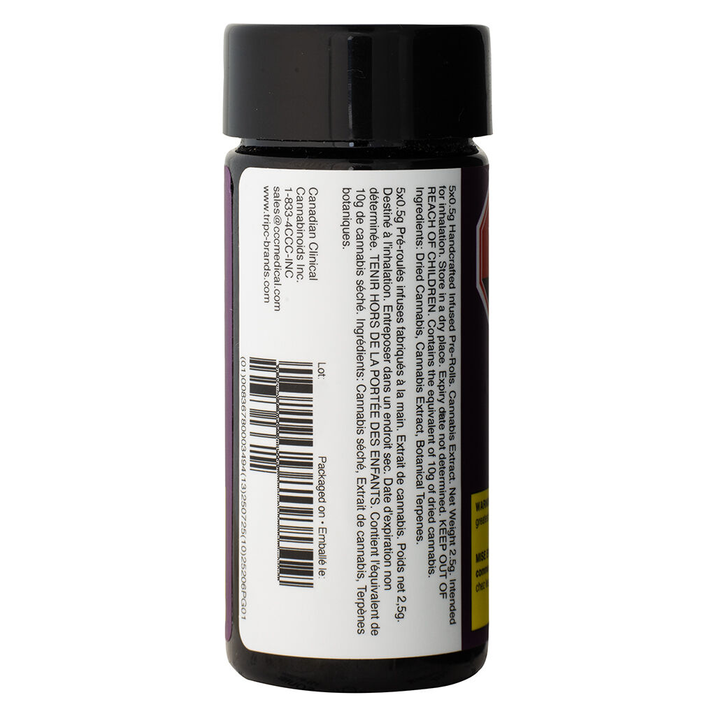 Very strong and long-lasting, with classic indica-leaning weight and a heady, high-impact lift up front. Best for evenings, weekends, or when you want a high-potency treat rather than a casual smoke. This infused pre-roll is geared to experienced consumers with a higher tolerance.
