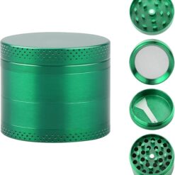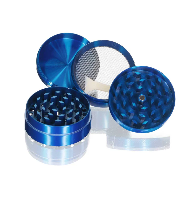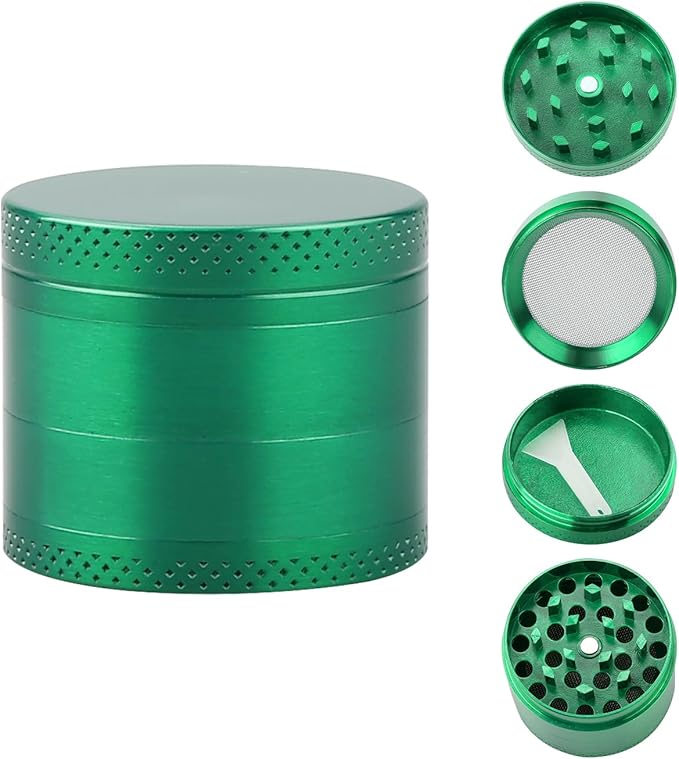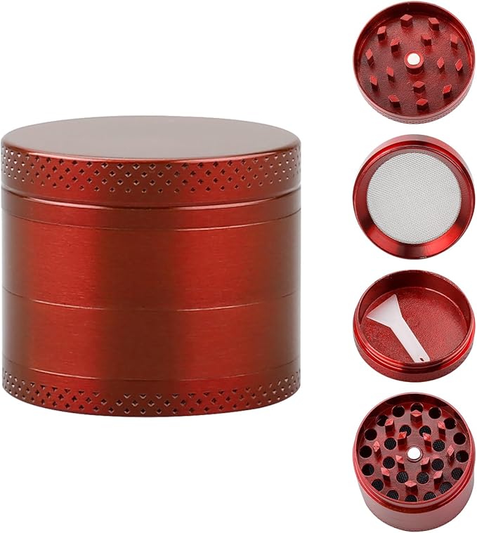 - 4-piece design (grinding chamber, catch-screen, kief chamber, magnetic lid)